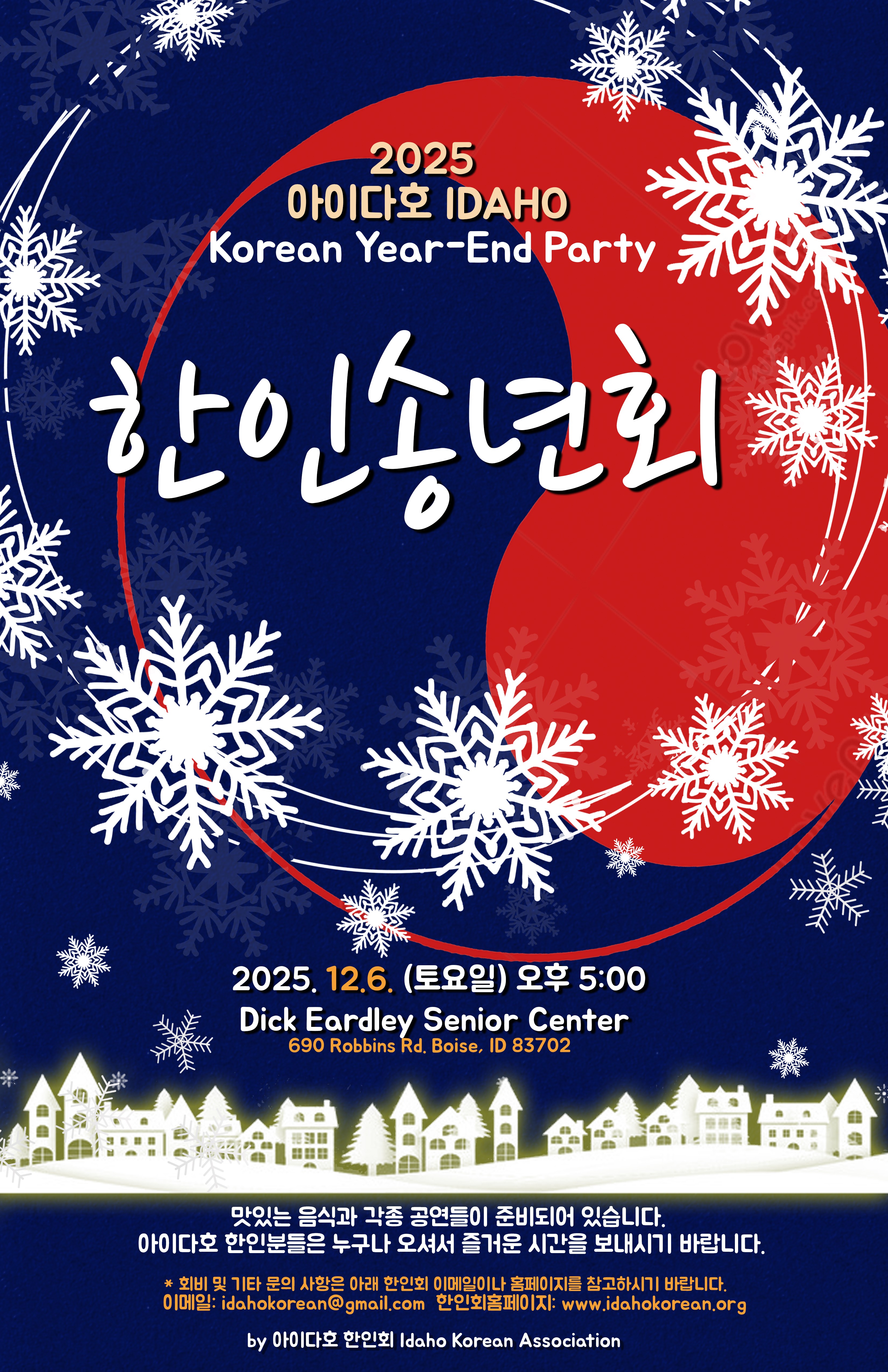 1) Idaho Korean Association's Year-End Event on Dec. 6 (SAT) ☞ The poster for your reference